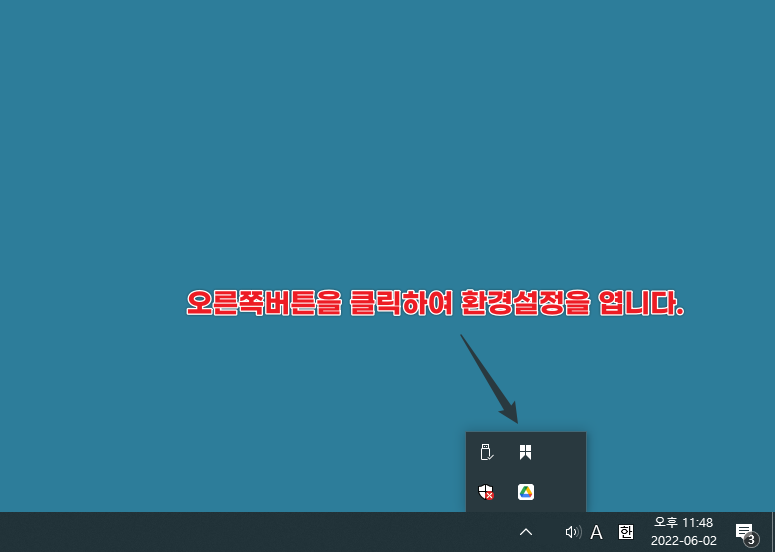 위 그림처럼 아이콘 오른쪽을 클릭하면 환경설정을 열 수 있습니다.