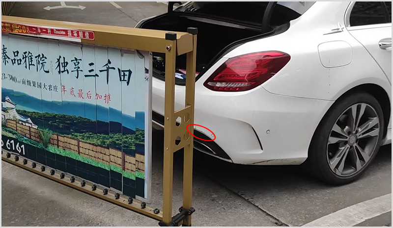 이 경우는 차대차 사고가 아니고 아파트 주차장 출구를 나가는데 갑자기 앞차가 멈추어 나도 멈췄는데 이 차단기 센서가 내차가 완전히 빠져나간걸로 감지하고 그냥 내려와서 빨간색 타원 표시한 부분이 긁힌겁니다.