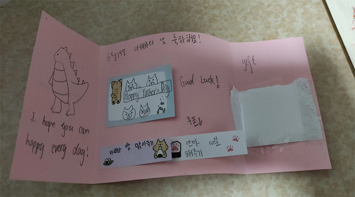 한국에는 어버이날이 있어서 따로 아빠의 날은 행사같은걸 안하니 있는줄도 몰랐는데 중국에서는 공휴일은 아니지만 애들 초등학교에서 편지쓰기도 시키고 그러네요.