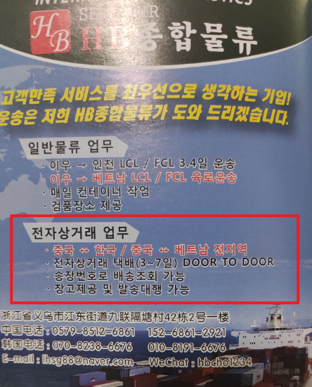 1 . 중국에서 물건을 수령하고 한국의 소비자에게 택배까지 책임 질 물류회사를 선택한다.