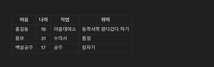 |홍길동|19|이름대여소|동쪽서쪽 왔다갔다 하기|