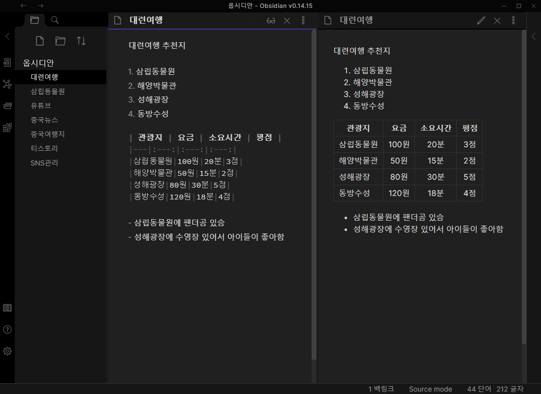 옵시디안에 이렇게 입력창 결과창 동시에 보는 기능 당연히 있습니다.