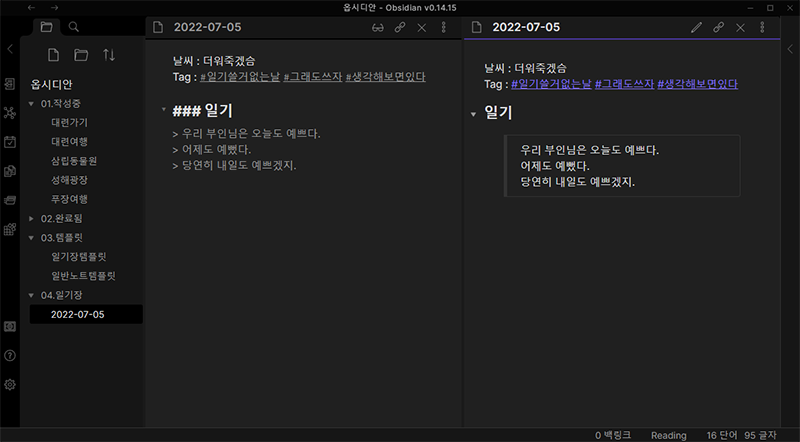 옵시디안 템플릿 만들기 (2) | 2022.07.04 |
