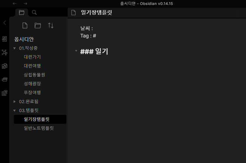 '템플릿 파일 경로'는 03.템플릿/일기장템플릿 선택 해주면 됩니다. 쉽죠?