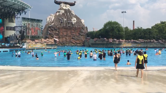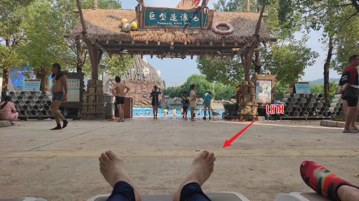 지금 중국 절강은 40도를 넘어가는 고온임에도 여기는 섬처럼 되어있고 곳곳에 지붕도 크게 잘 만들어놔서 이렇게 누워서 음료수 한잔 드링킹 하고 있으면 시~원 합니다. 위 사진의 위치는 파도풀 앞이라 보는재미도 쏠쏠해요.