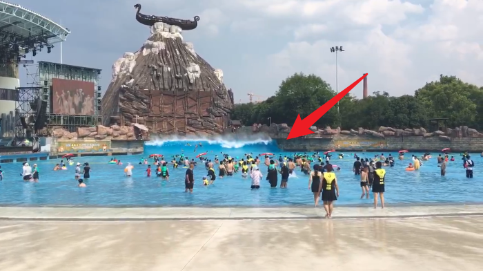 6. 최고 핫스팟인 파도풀엔 사람이 너무 많다보니 물도 탁해보이는것 같고 온도 역시 뜨뜻 미지근 한 느낌. 파도가 파도가 아닌 해일이 한방씩 날라오는데 그럴때 사람끼리 부딪혀 다치기도 한다는 댓글을 미리 보고 갔는데 실제 우리딸 무릎에 눈탱이 한방 맞았네요. 물론 이 화끈한 파도는 재미적인 측면으로는 장점일 수도 있습니다.