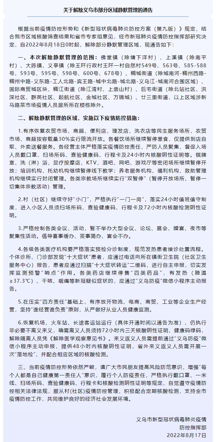 국제상무성(이우시장)과 저희 아파트(新科花园) 를 포함한 여러 구역이 공지됐던 봉쇄기간 보다 앞당겨 금일 0시부로 봉쇄해제 되었습니다.