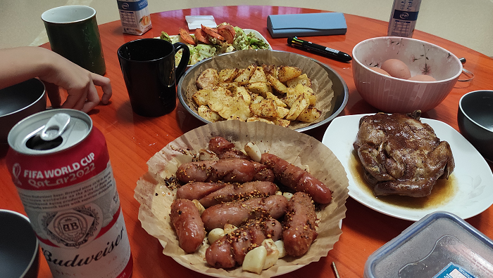 우리 가족도 봉쇄해제 기념으로 보급품으로 받은 양배추와 당근으로 볶음요리, 보급받은 감자로 튀김요리, 보급받은 닭 오븐에 구워 술안주해서 아껴먹던 맥주를 마셨습니다.
