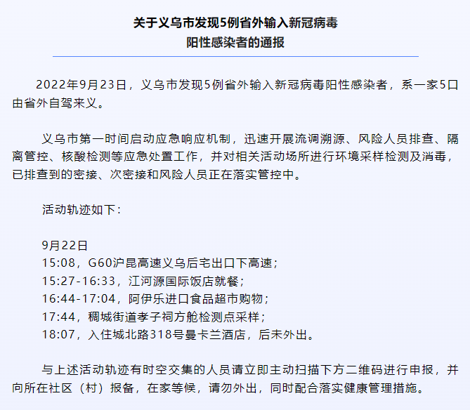 신장에서 온 한가족 5인이 이우에서 코로나 양성 판정을 받아서 또 일부지역 봉쇄및 일부학교 등교 중지 되었고 이틀에 한번 PCR 검사없이 식당, 호텔 등 돌아다닌 것으로 파악돼 밀접 접촉자들의 추가 확진이 발생될 확률이 클것으로 예상되고 있다고 합니다.