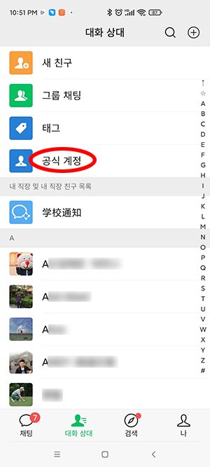 그리고 아래 동그라미 친 대화상태를 탭하세요.